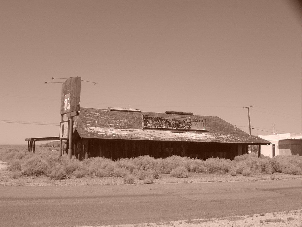 The hot breeze stopped blowing. The man stood still in smiling. Crystal looked around again. There was a dusty road to her left, a barren beaten down pathway, in case any car would ever need to pass through. She saw a speed limit sign covered in the pale brown earth, a rocky mountain just beyond and only one other sign visible in her line of vision.