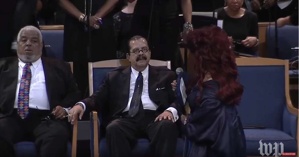 About 9 hours into the memorial, this "eulogist," handpicked by The Queen, herself, used his 50 minutes to take Black America to task. He criticized "black-on-black crime" (which isn't a thing, but okay) and likened rioting to simply "destroying property and looting." Called black men soulless and critiqued the disappearance of the Black father. And then condemned gay relationships, single mothers raising sons by themselves, and the Black Lives Matter movement altogether. He also found time to call Black people "low down" and squabble something about us all being high and drunk.