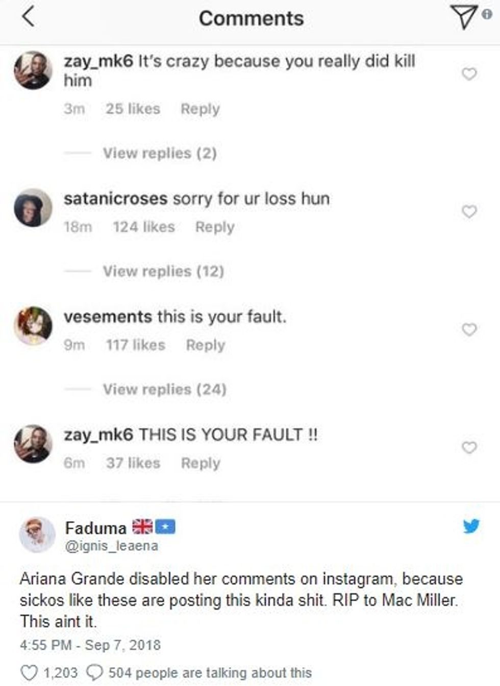 Comments like these have resulted in her turning off her comments. Grande posted a picture of Mac on her Instagram and is clearly mourning yet the comments continue. It has even been reported that she may have been rushed to the hospital due to an anxiety attack.