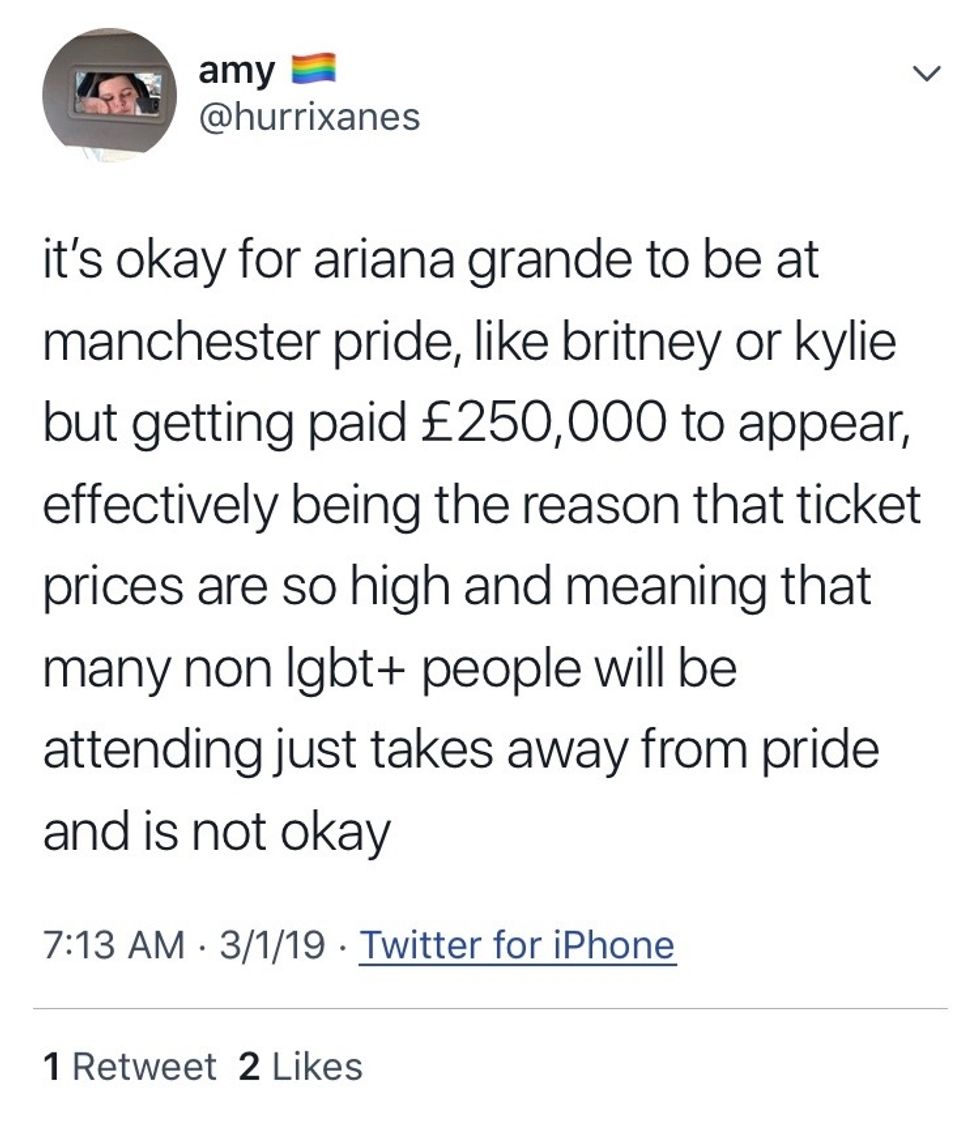 As an ally, it is our responsibility to stand up for a community of minorities in solidarity, using our voices to call out blatant corporate wrongdoings like these. Manchester Pride is a celebratory festival for the LGBTQ+ community, not an Ariana Grande concert, and should not be treated as such.