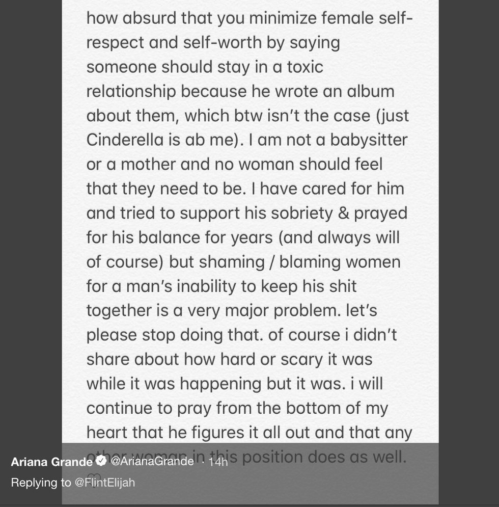 Also, kudos to Ariana for still staying on Miller's side — praying for balance in his life and for his sobriety. She still supports him.