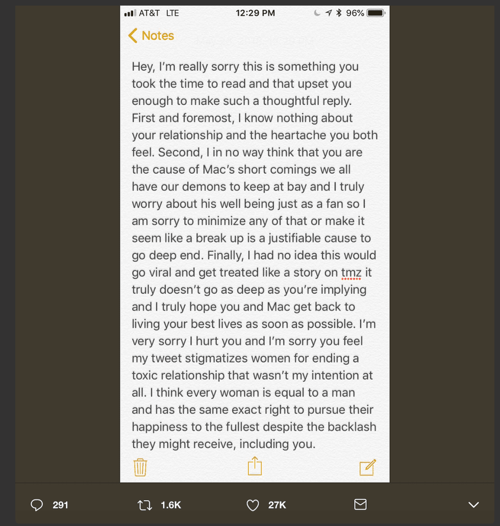 It's tough to leave someone like that — someone that you've invested so much time in and care for deeply. It's especially hard when all you want to do is help and they don't want it. I'm proud of her for taking that step to the side and hopefully, Mac Miller will grow and seek help.