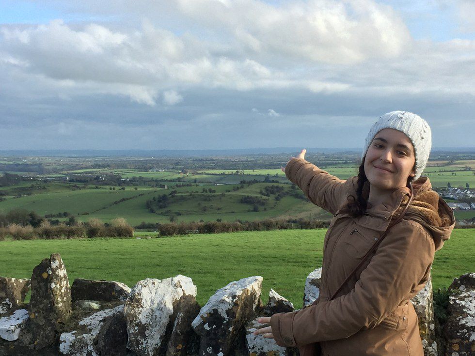 When we finally arrived, we had lunch at a cute place known as the Tea Pavilion in the Visitor Centre. There, we had finger sandwiches and soup, with tea or coffee. We also were given some time to wander around the garden, where there was an adorable cat named Bubbles that was sitting on one of the tables, basking in the sunlight and attention. Afterwards, we finally started our tour, where we learned about the Battle of the Boyne in 1690, as well as the history of King James II of England and Dutch Prince William of Orange, who led the opposing sides of the battle (King James was also Prince William’s father-in-law; talk about an awkward family dinner). After we were shown where the battle took place and went through a visual tour of the battle, we departed the Visitor Centre and went to the Hill of Slane, perhaps my favorite place that we visited. When we arrived, the clouds parted and the sun shone down brightly upon the hill, creating the perfect contrast between the bright sun and the ruins atop of the hill. The view from the top of the ruins was perfect for landscape shots, and one of the girls in the group even went as far to scale the walls, all in the name of taking photos, which gave those of us watching her more anxiety than she probably felt while perched on the precarious ruins.