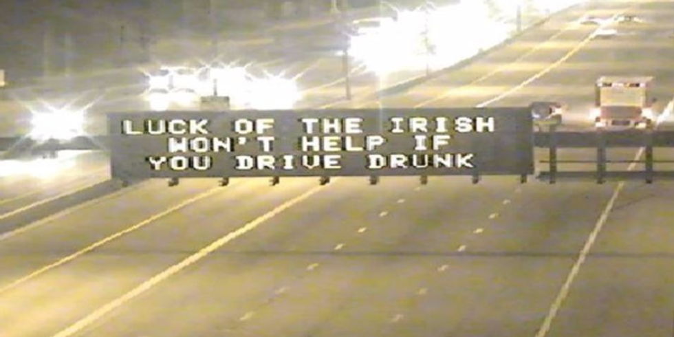 This sign that addressed the drinking and driving issue on St. Patrick's Day: