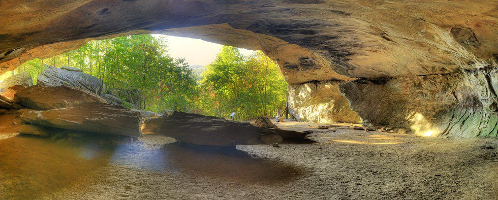 Rock House Cave Trail is an easy .25 mile trail that takes you into a large rock shelter where, if you look hard enough, you will see Native American cave art created over 500 years ago.