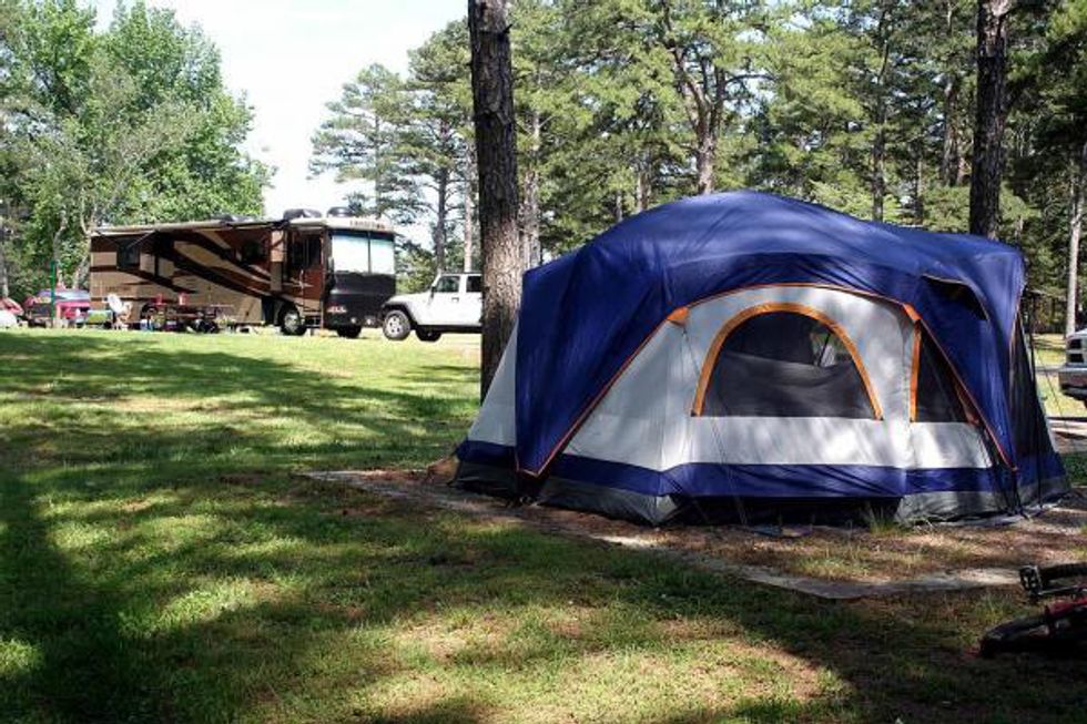 Petit Jean offers tent and RV camping as well as cabin lodging for its visitors. There are 33 cabins to choose from with some being walking distance to Mather Lodge, and others scattered along the bluff of Ceder Creek Canyon. 10 of the cabins include kitchens, and 20 of the cabins are fully furnished. There are also duplex designs to choose from. Aside from the lodging offered there multiple RV and tent camping areas totaling 125 campsites. You can choose from lakeside or wooded areas. If you don't have any camping equipment you can rent a YURT year round from the park that accommodates six people.