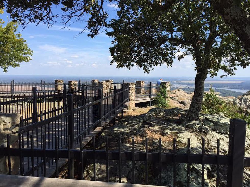 Petit Jean's Gravesite at Scout's Point overlooks the Arkansas River, Lock and Dam #9, Blue Point, and Ada Valley. You'll not only experience a breathtaking view but also an incredible history lesson about the park from the information stand for Petit Jean's grave.