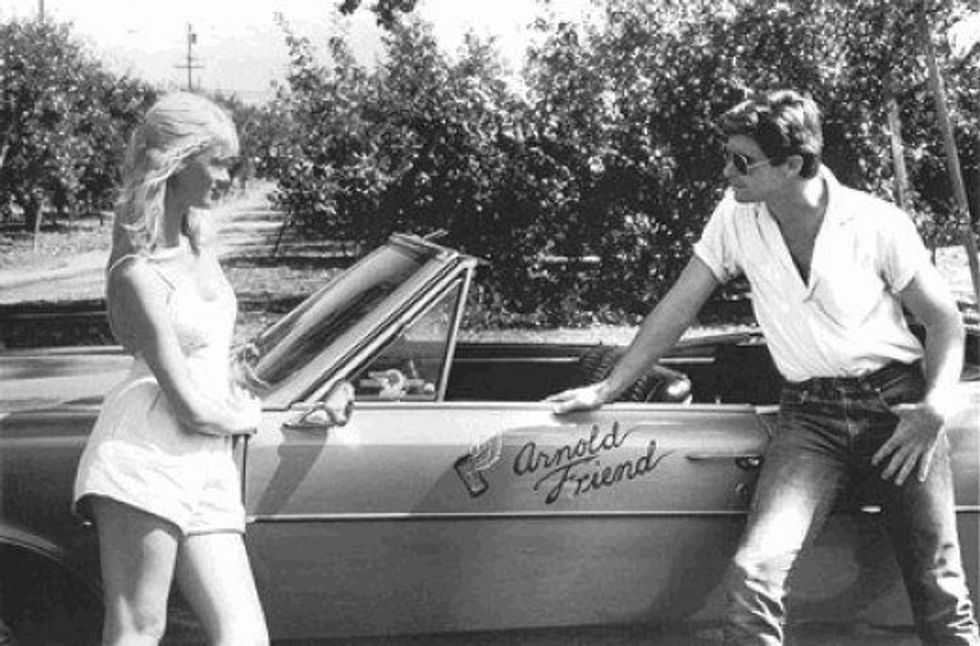 A certain boy who is there takes a great interest in Connie. As she is leaving with a different guy, her and this other boy’s eyes meet and he smiles and says, “Gonna get you baby” (Kennedy 723). She pays no attention to him and soon forgets about him. She does not forget for long; however, because a few days later when her family goes off to a barbeque, the boy shows up at her house. He starts off his conversation with her by flattering her and attempting to impress her. Although the boy has grabbed her attention, she is still trying to play coy in her replies to him. She does little acts such as fidgeting and looking away and flipping her hair to make him think she is not interested when in fact, she is. Finally, the boy tells her his name is Arnold Friend and he starts in on wanting her to come for a ride with him in his car. She says no, but continues to converse with him anyway.