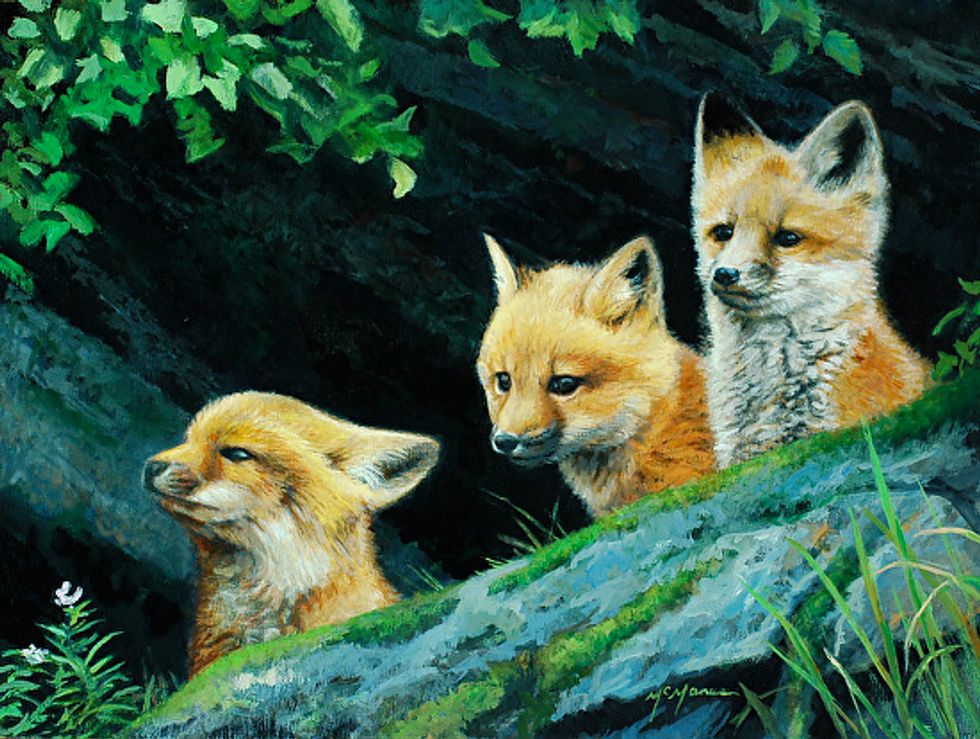 The first piece on the auction block is a beautiful one of a kind by Peter Max himself. The starting bid is $42,000. That is entirely too rich for my blood, and just about everyone else's in the auction. Next up is a print of three adorable foxes. Bright eyed and bushy tailed, the bid starts at $40. This is my chance. I raise my bid card along with many others. The bid gets all the way to $150!