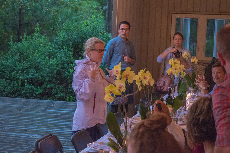 Serenbe hosted the prelude to “Art Over Dinner,” in their Bosch Experience Center where guests were able to enjoy cocktails. The night was about artistic enrichment and the rain decided to once again paint the streets with its presence. In a moment that seemed too coordinated, Serenbe’s Art Farm Director, Erin Bernhardt, gathered everyone’s attention and introduced who they were hosting for the night’s “Art Over Dinner,” BeLoved Atlanta. Amelia Quinn, founder and president of BeLoved, and Michelle Hoeft, program director, gave a brief introduction to the charity, and shortly after, everyone was directed to drive to the farmhouse for dinner.