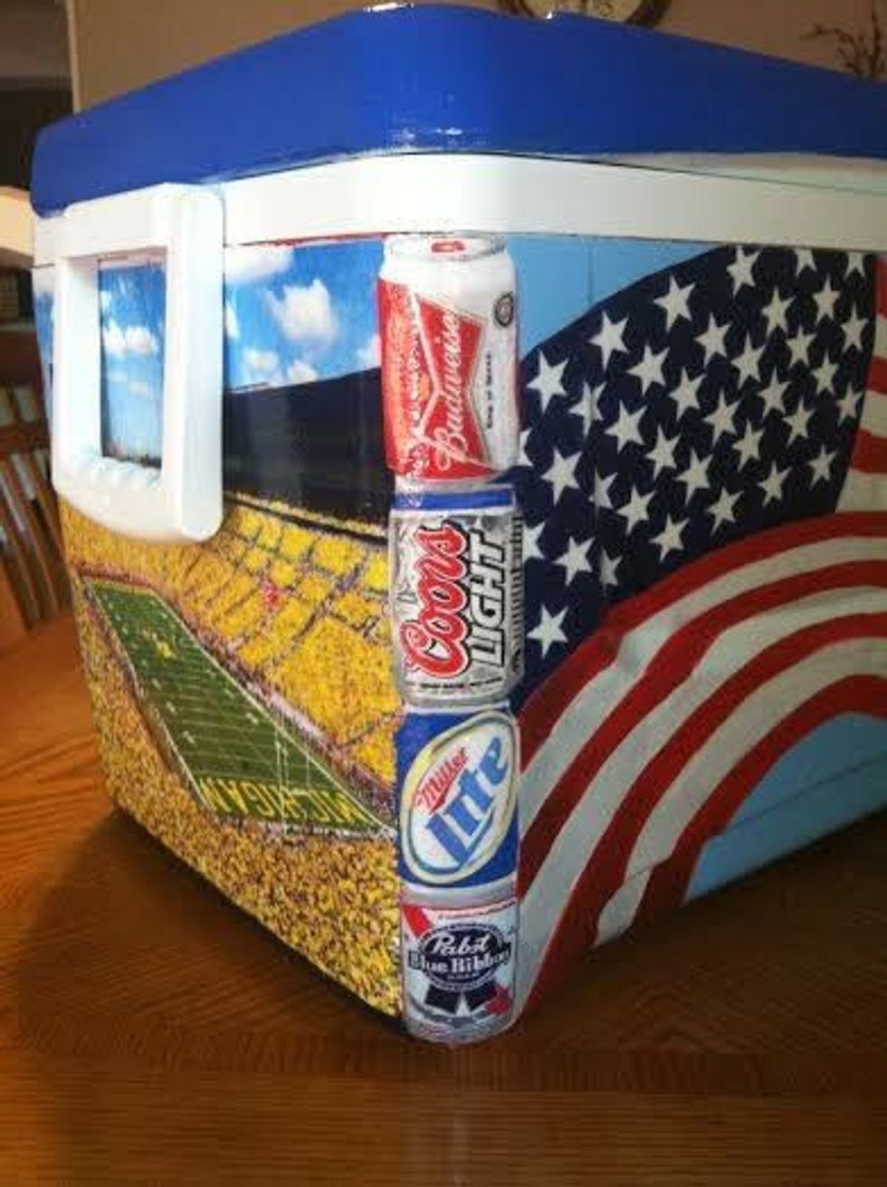 4. What's better than beer, football and America? Using the corners of the cooler to stack your cooler owner's favorite beer is unique and a great space filler!