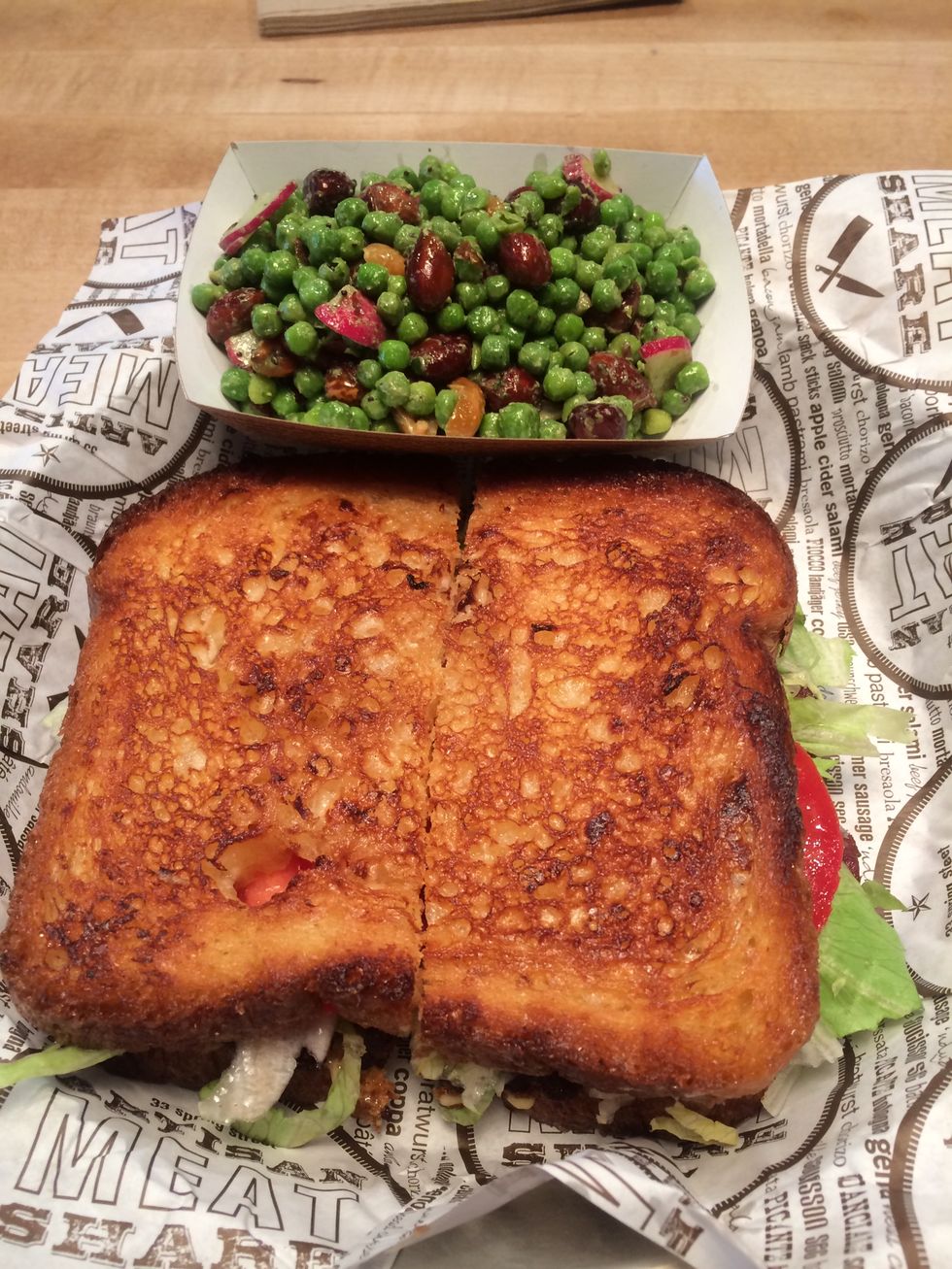 Instead I decided to ask for a recommendation for a sandwich, and ended up with the buckboard BLT with a side of pea and peanut salad with radish and green goddess dressing (pictured below) and a Boylan's cream soda to drink. If you're of age, you could also opt for a Pluff Mud Porter or a draft beer from Holy City Brewing. At one point I even got caught eating the bacon straight out of the sandwich, and received a nod of approval for it.
