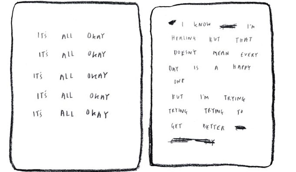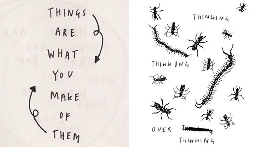 Instagram has become the home for thousands of artists to post their work. One of those such artists is Anastasia Tasou, a 22-year-old freelance artist from London. In her Instagram description she sums her artwork up as simply drawing what she feels, and a quick scroll through her work you are sure to find something you can relate to. Her artwork consists of words and inky sketches that are eerily good at evoking some kind of emotion in the viewer. Her pieces touch on the ups and downs of being in love, the struggles of depression and anxiety, as well as "realistically positive" slogans.