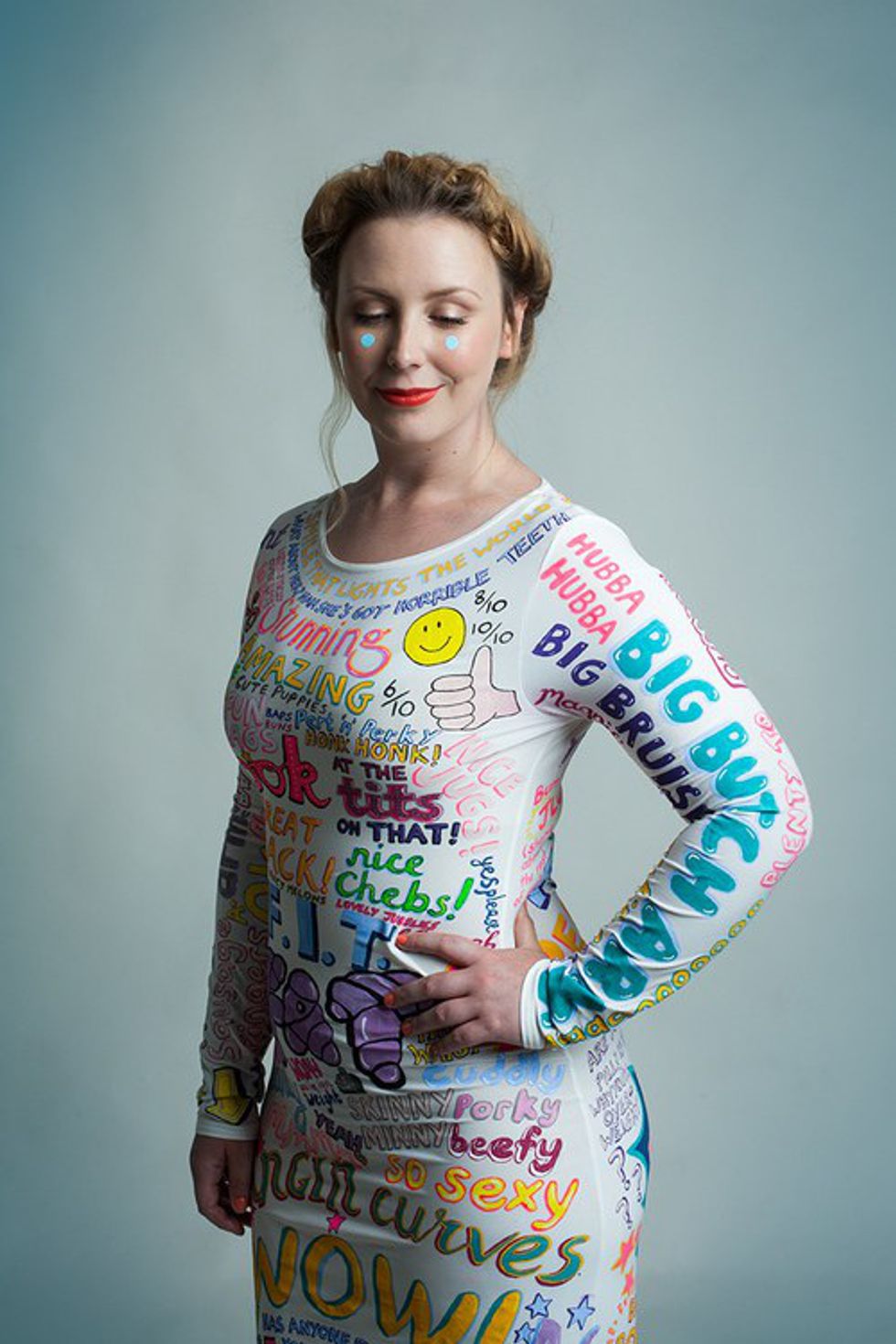 The 31-year-old London-based artist, Jojo Oldham, has figured out a way to embrace these remarks — the good and the bad. SELF reports that Oldham painted a long-sleeve maxi dress with real comments people have made about her.