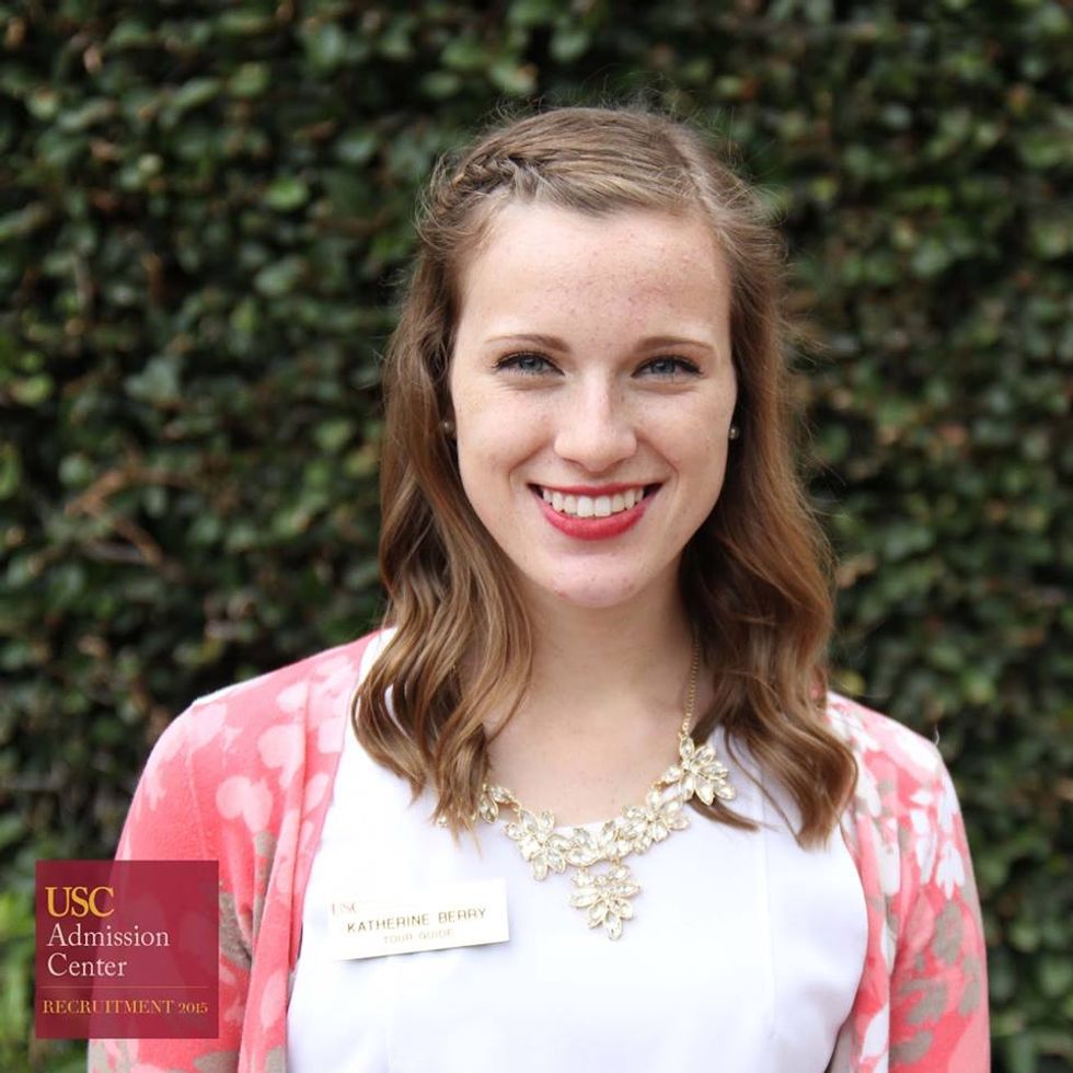 (In addition to working as a university tour guide, Berry also plays trumpet for the USC Trojan Marching Band and is a part of Society 53, the student governing team for the USC Alumni Association.)