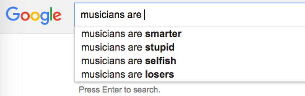 Recently, my friends and I have been discussing how artists and musicians are treated in society, and how unfair it is. To prove my point, I went to Google, started typing in a phrase, and let Google come up with the most frequent searches: