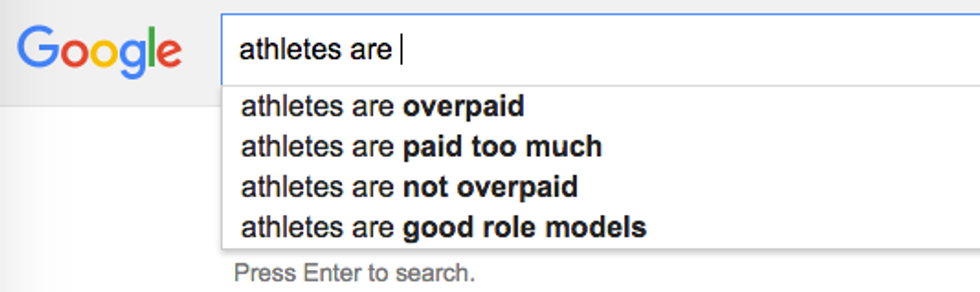 Athletes, unlike artists, are recognized for their inspirational stories and positivity they bring to a society. Again, I started typing in a phrase in Google, and see the most frequent searches: