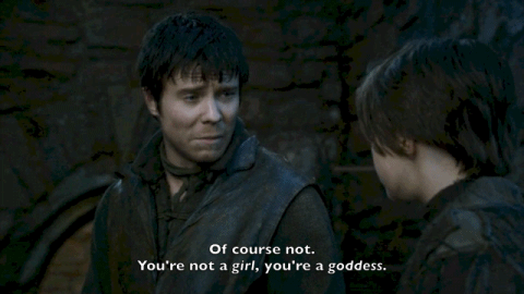 Arya spends half of the show as a boy and the other half as no one. So can you say screw you, gender? We have an incredibly inclusive campus when it comes to the LGBTQ+ community. Pretty sure a girl has no judgment. And as we all know, there is no distinguishing between man and woman in High Valerian.