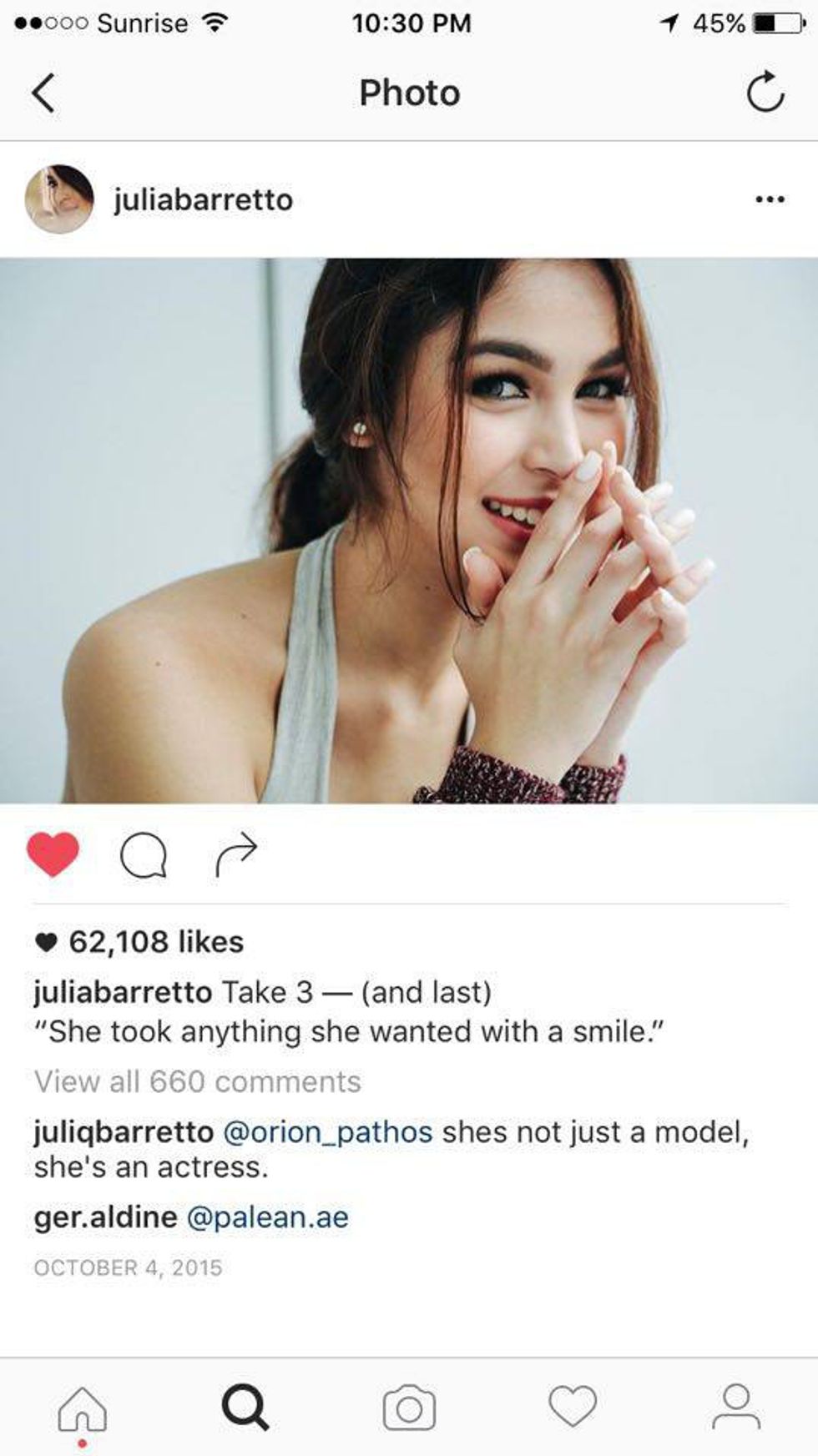 The rising It Girl of the new generation, Julia Barretto's Instagram feed gives us serious vacation envy. In addition to her beautiful snaps of the Philippine beaches, her beauty and fashion pics give us some serious inspo of how we should upgrade out Insta-game.