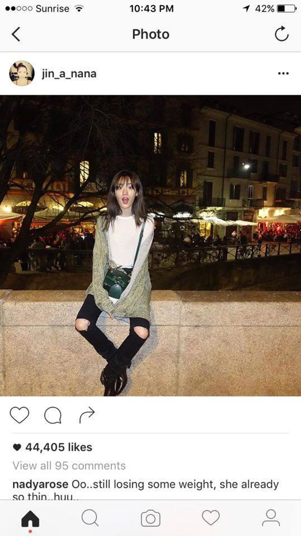 The former model and current member of K-pop girl group After School, Nana is well-known for her beauty. She even topped film blogger TC Candler's 100 Most Beautiful Faces list for two straight years in a row. She follows the trend of beautiful people who like to joke around. She as well posts photos from her fashion pictorials.