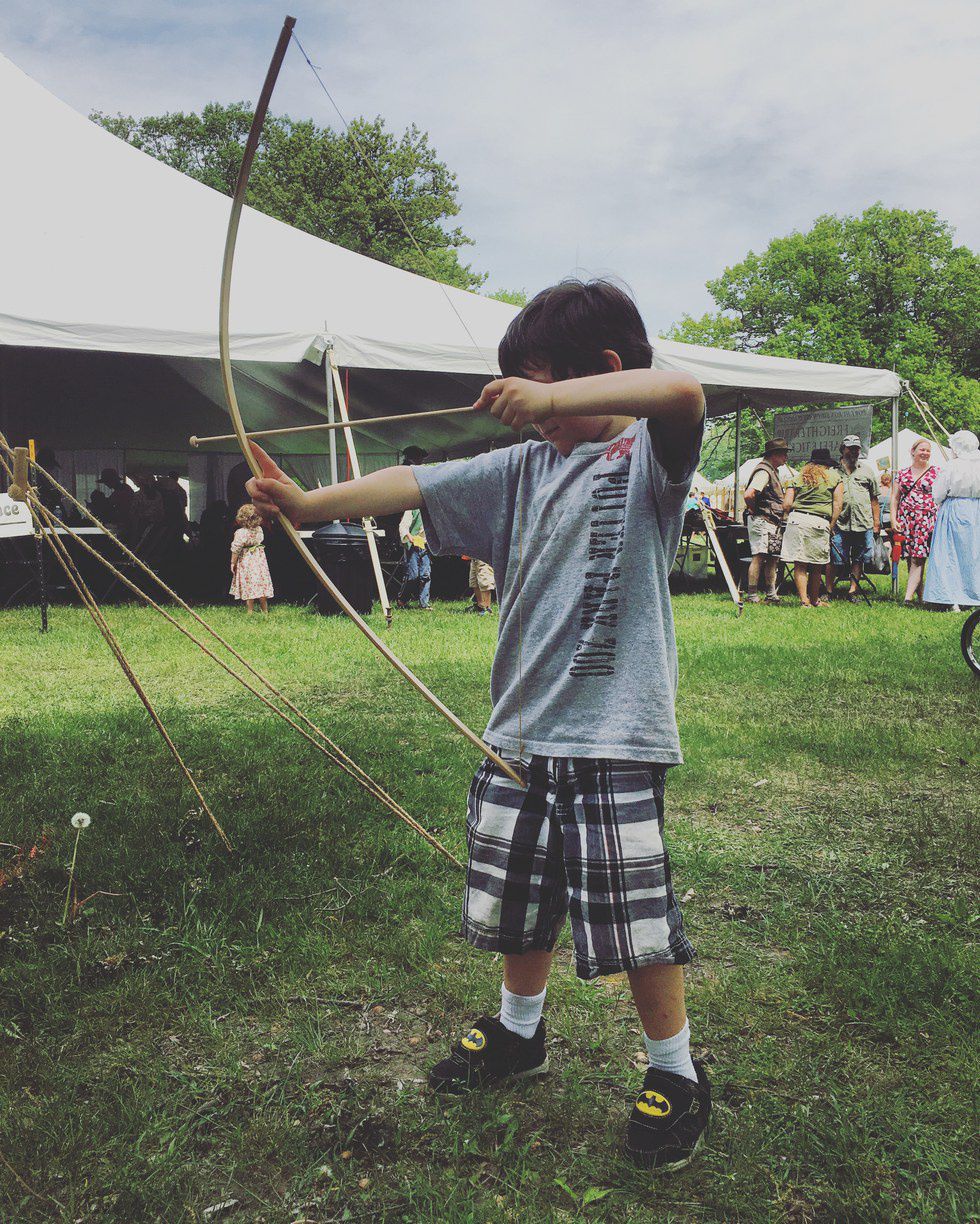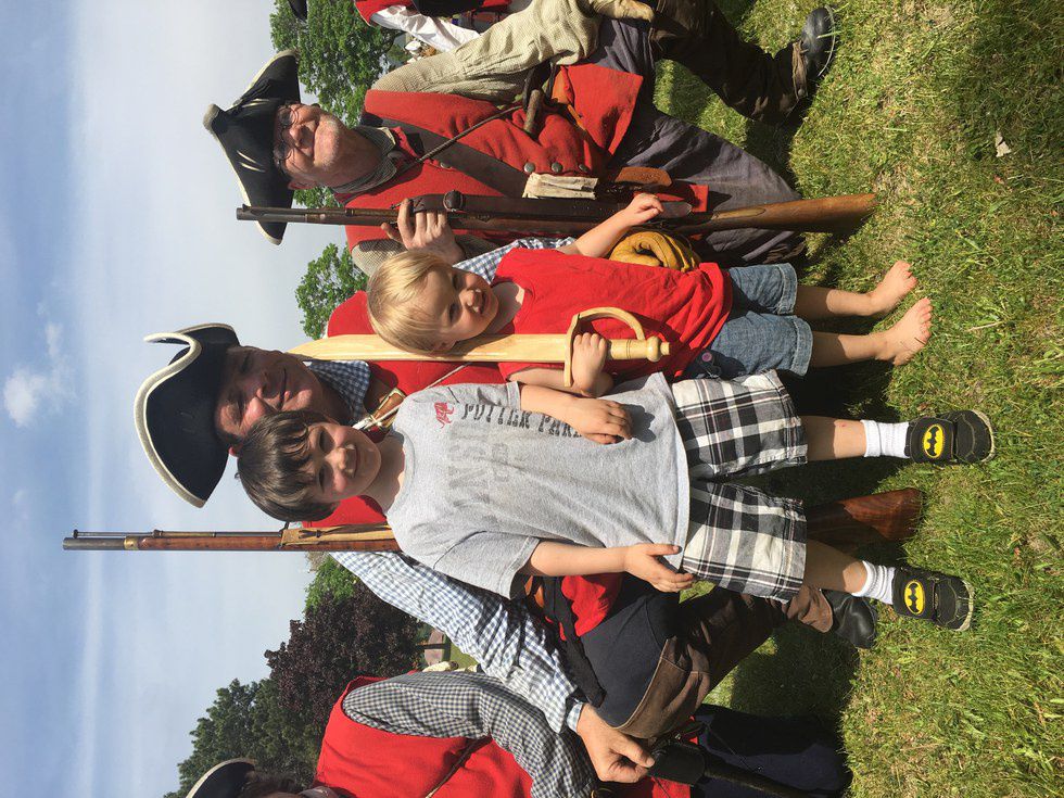 (We had just come from a war reenactment where his father "fights" for the French. )