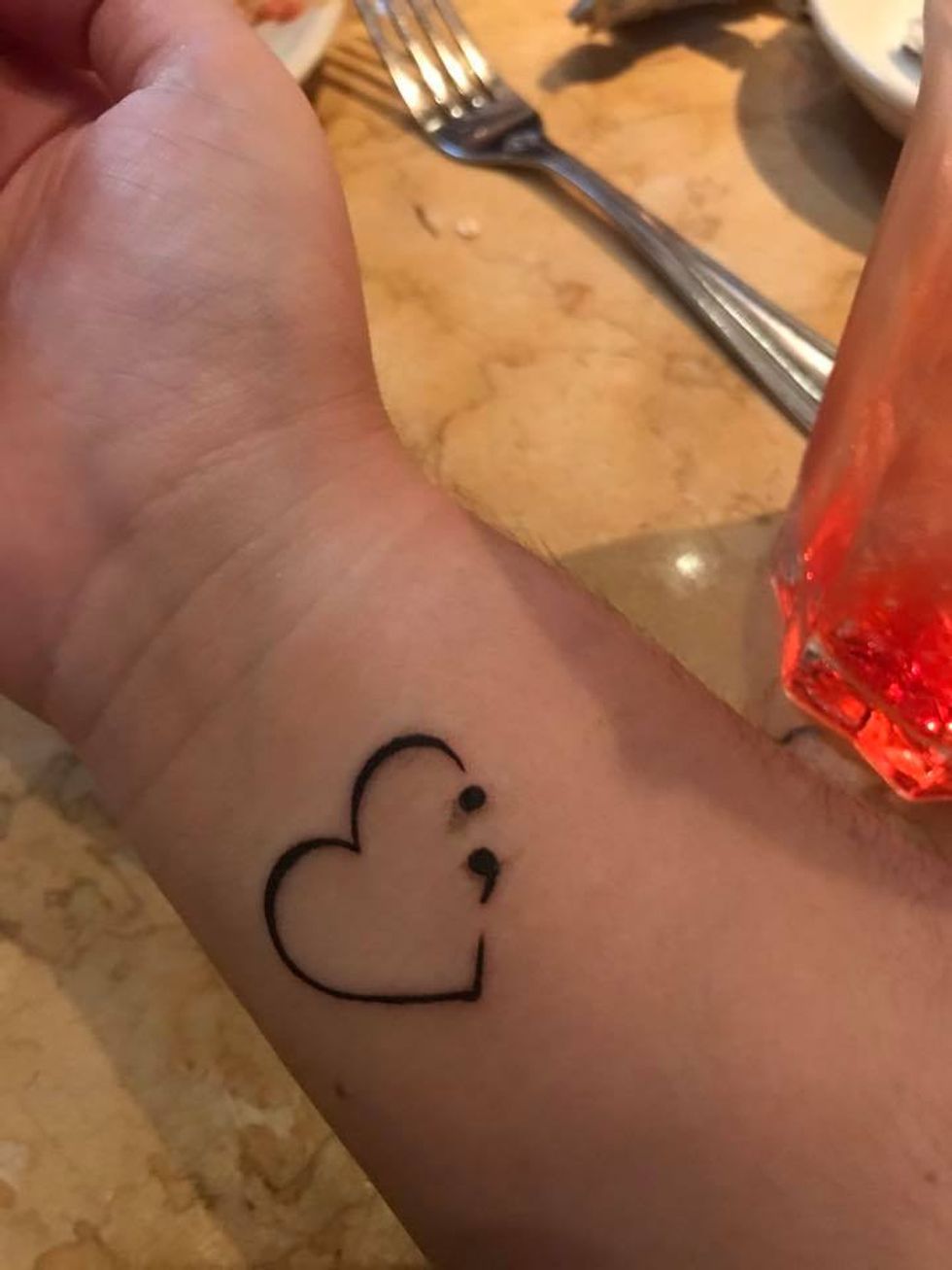The passion I had was fiery, and it was prominent. When I found out about "Project Semicolon," I became obsessed. I wanted the bags, the sweatshirts, everything. But most importantly, I wanted this critical meaning tattooed on me. I wanted a constant reminder that I needed to keep going and continue to write my story. I needed to continue writing my novel of happiness, helping people, and living, most importantly.