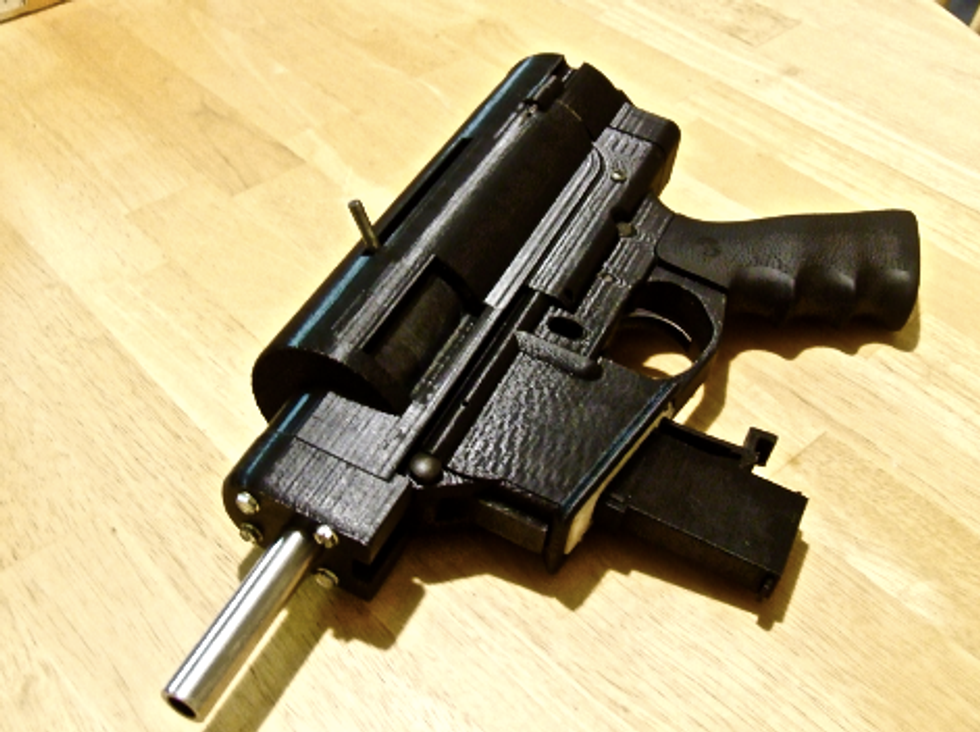 With just a bit more printing time and a quick trip to the Home Depot for a few metal parts, you can put together "the Shuty", a semi-automatic 9mm pistol capable of repeated fire and reloading. It's bulky, but it's a nine.