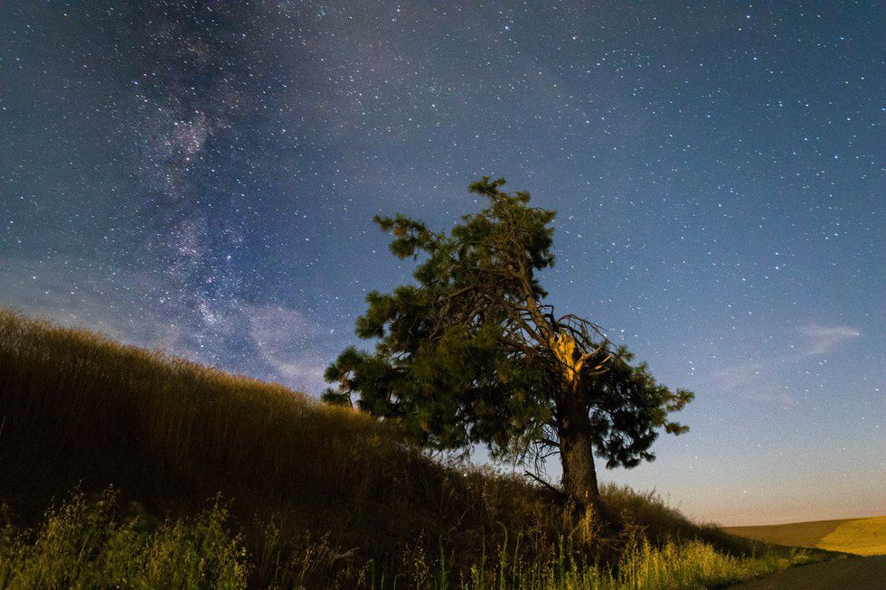 The very most important occasion that I have come to enjoy in my life is Night Photography. When hearing the term, astrophotography, My whole entire mood lights up. The reminiscing of past photo shoots during the night and being able to drive out into the cold, fresh atmosphere of the Pacific Northwest. Picture this, you're driving on the road out to where there is nothing around but the pitch black of night along with the rolling hills of the Palouse. You finally reach your destination to where you're perched upon a mound surrounded by the scent of evergreen trees and the very fresh air that you breath, deep within a forest. It's silent. You crouch down and listen to the life around you. Even though you may not be able to see anything during the night, you know that you are not alone. The hoot of the owl, the chirp of the birds and the crackling of the branches that the very wildlife step on. Then, as you tilt your head towards the sky, you see the most amazing part. The galaxy.