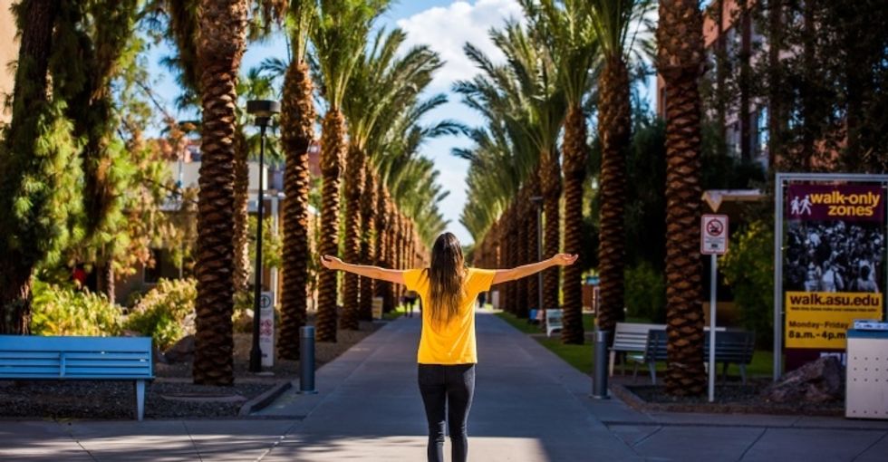 Arizona State University is at the heart of Arizona with five campuses across the state. The school is known for its school spirit, sports culture and scorching heat!
