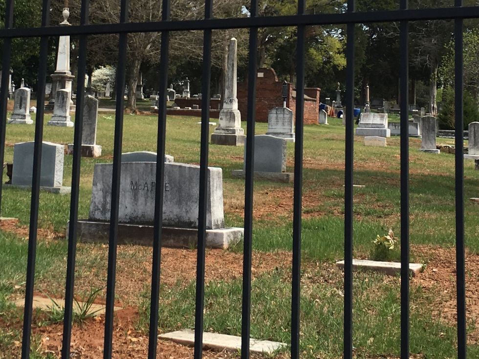 In the middle of a mile stretch featuring a mini mall and drug stores, there are patches of earth dotted with the Huge headstones of Confederate soldiers. Their resting place are still given honor even in the middle of urban sprawl.
