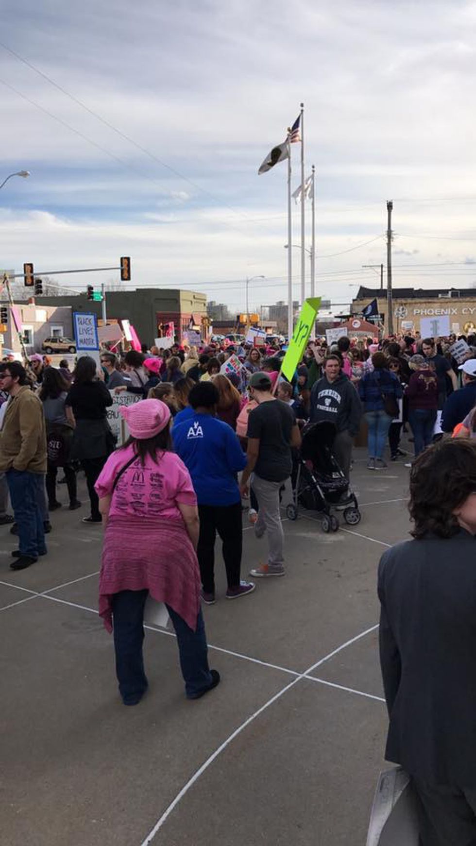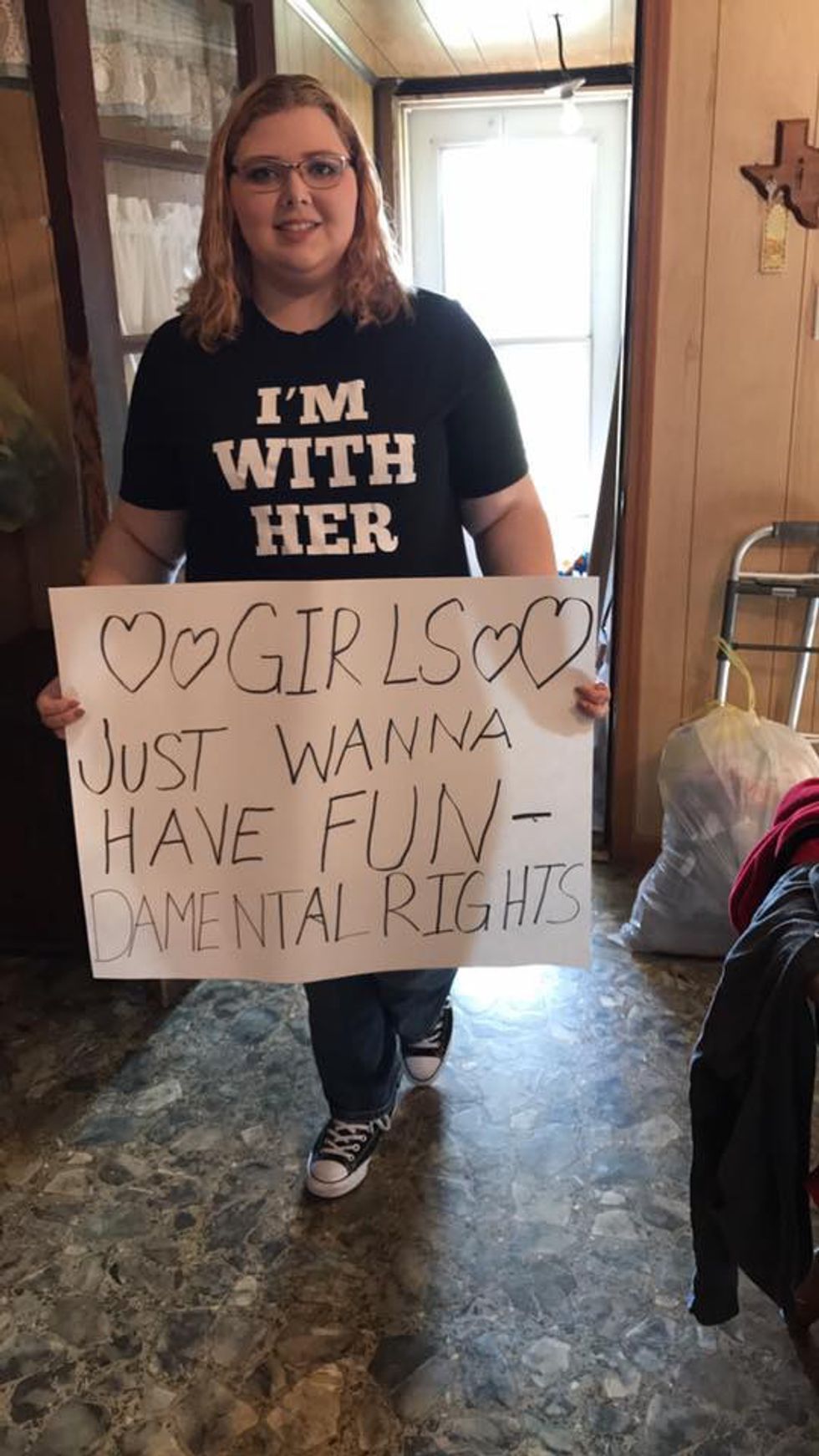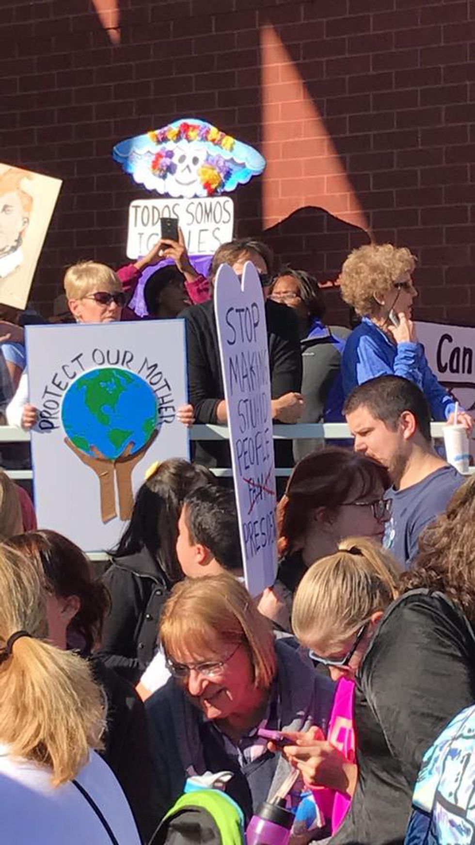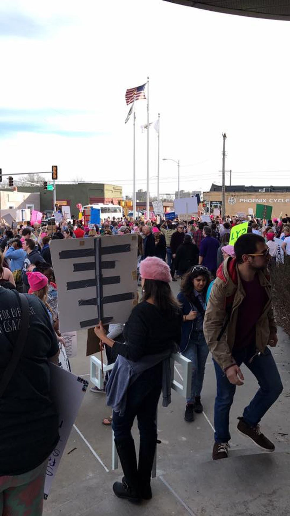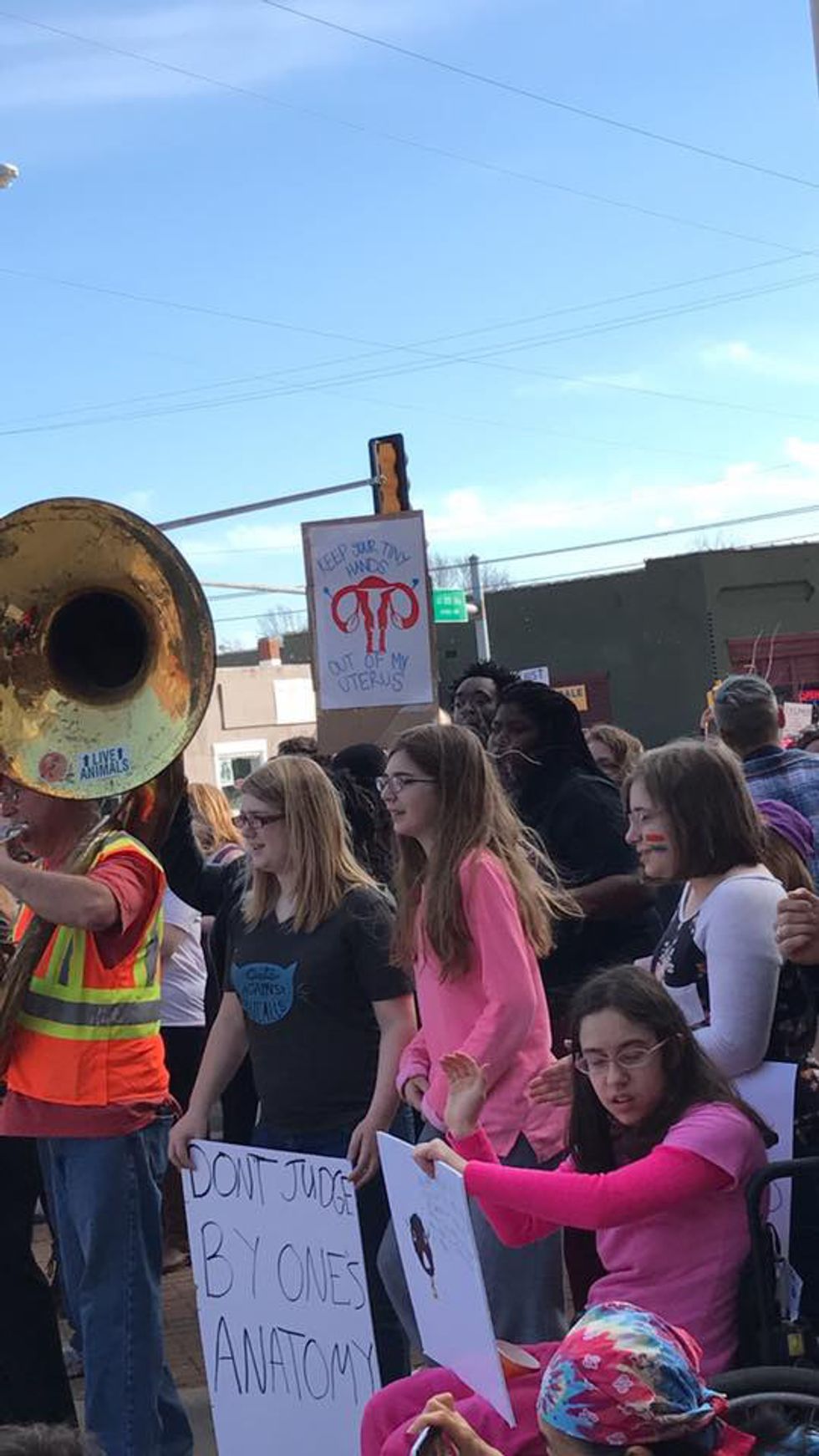 My mom helped me make a sign. It said, "Girls just wanna have fun- damental rights." After it was done and I got a million photos taken with it, I loaded up and drove to Carbondale. When I arrived, it was the most glorious thing. There was not a single parking spot in downtown. It turns out that hundreds, maybe even thousands, of people showed up for this "small town" march. As I made my way to the start-up line, I noticed all of the signs, and all of the emotion. Happiness, sadness, fear, anger; it was all there.