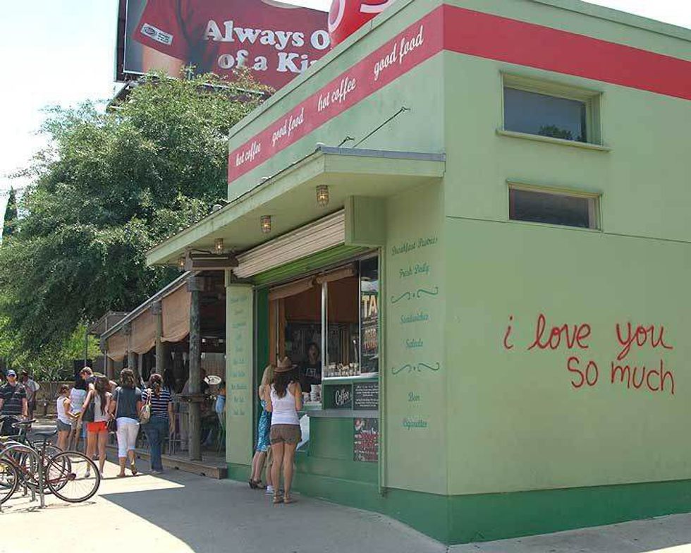 Home to the famous "I love you so much" mint wall, Jo's coffee sits comfortably in Austin's busiest area, South Congress. This outdoor cafe is perfect for walking by and grabbing a quick cup, or sitting down and people watching.