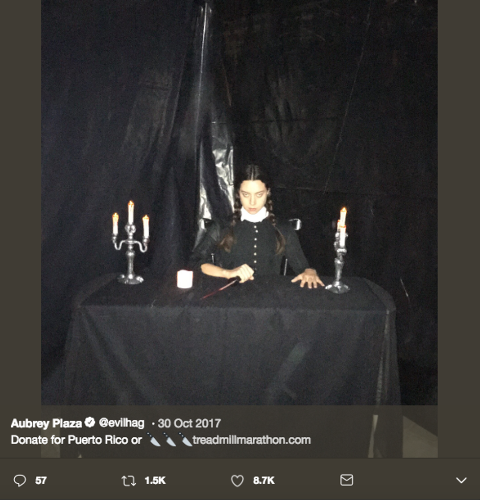 Aubrey Plaza's Twitter reflects just how funny she is. Twitter is the perfect platform for a comedian, and Plaza uses it. Her handle is funny in a very Aubrey Plaza style. Follow her at @evilhag.