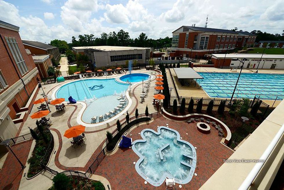Take on the challenge of rock climbing at the Auburn Rec and Wellness Center. After tackling the 50-foot-tall wall, ease your sore muscles in the pool and soak up the sun.