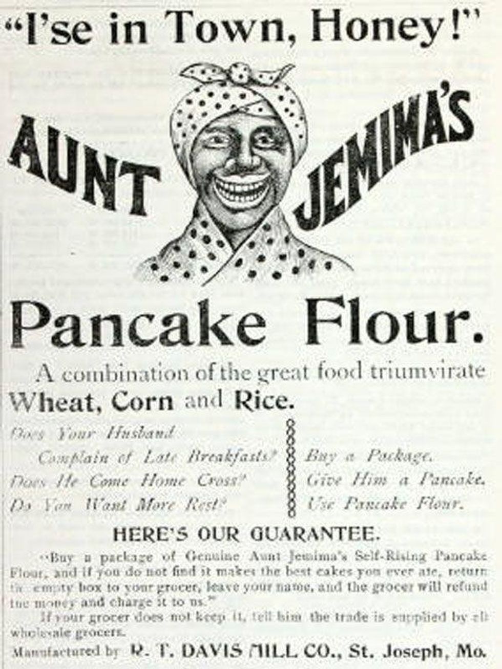 The company's logo came about in 1925, inspired by Billy Kersand's minstrel song "Old Aunt Jemima". The Aunt Jemima logo and name are clearly extremely outdated as they are references to the Old South and the concept of a "mammy" or servant, an older woman who was forced to devote her life to serving her white master and his wife and children, having to leave her own.