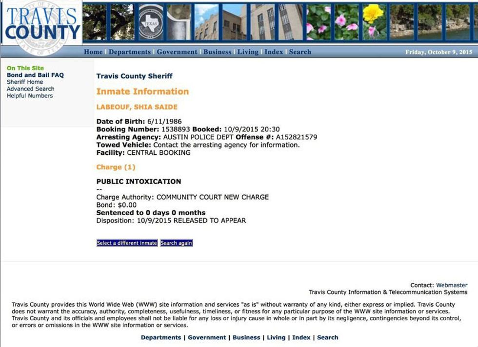 Records for the Travis County Jail show that LaBeouf was booked at the jail at 8:30 p.m. before being released that night on an agreement to appear in court -- something LaBeouf has failed to do in the past when required.