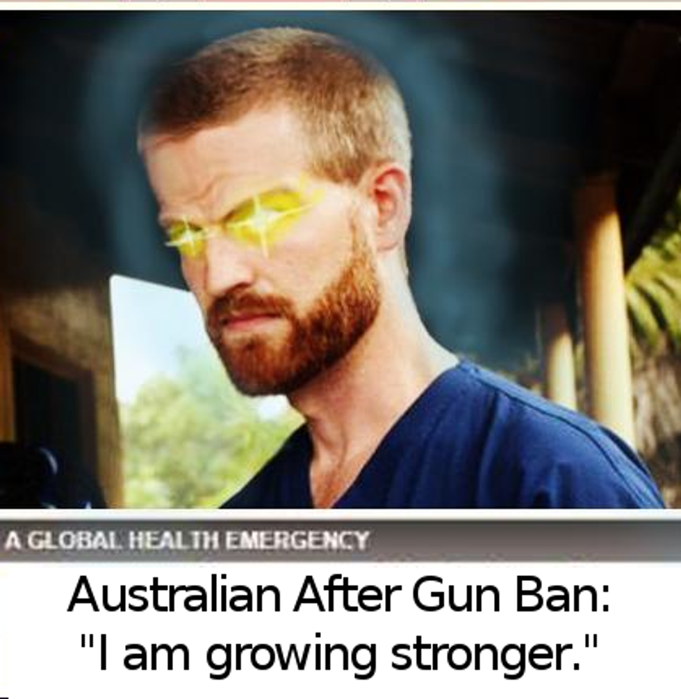 Australians have now become a force to be feared. Their newborns are muscular and their old are wise beyond their years. No man-made weapon will be able to stop these behemoths. During the 2016 election, Hillary Clinton addressed the situation in Australia and said that she would "consider" it, and to that I say: we might have no choice but to enact similar gun laws in the United States. If we're to stand any chance against the immortal horrors who will inevitably attack and take over the rest of the world, we must fight fire with fire and ban all guns.