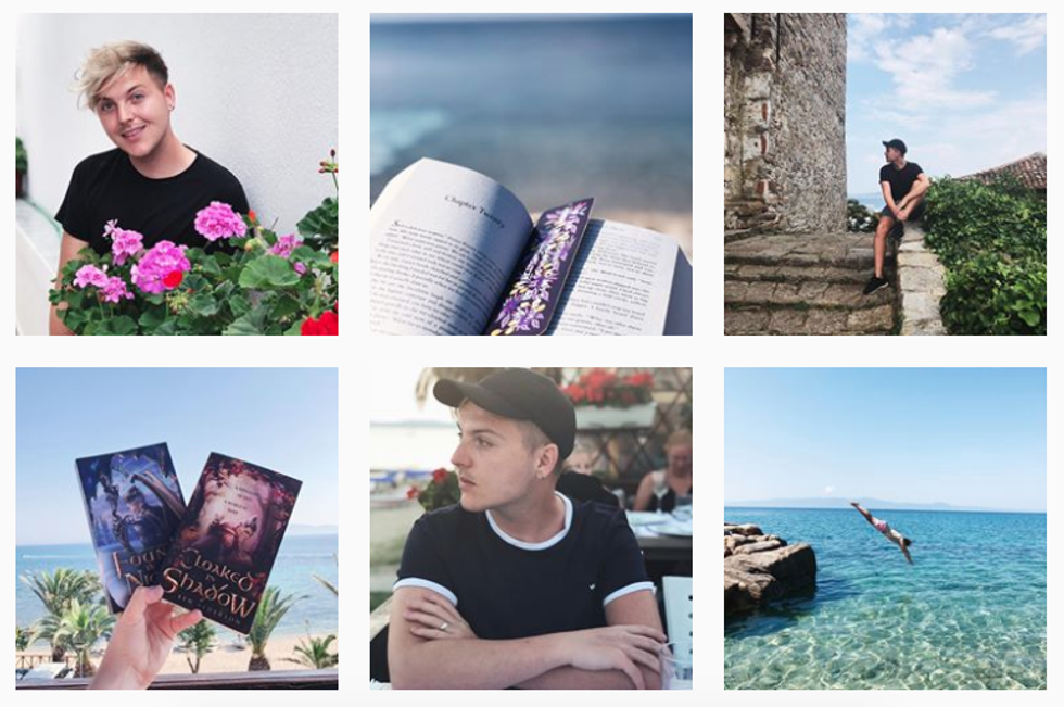 Next up is Ben Alderson: a booktuber (aka, someone who talks about books on youtube) turned publisher turned author of the "Cloaked in Shadow" series. Ben's feed is a perfect mixture of books, and travel. He's currently spending time in his home country of Greece, and the pictures are so aesthetically pleasing.