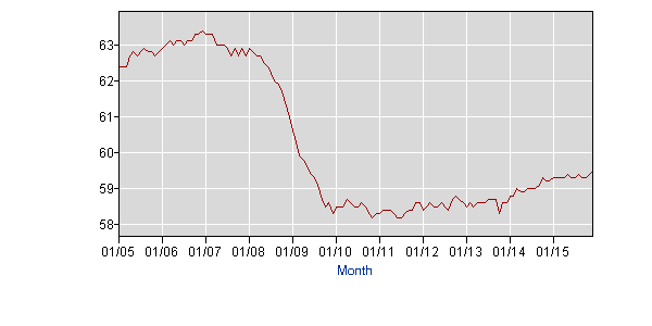 "So this red line is the employment-to-population ratio, in other words, the percentage of working-age people in America who have work. And we see that it cratered during the Great Recession, and it hasn't started to bounce back at all...the government's projection for the working-age population going forward...[shows] that [the] gap is not going to close."