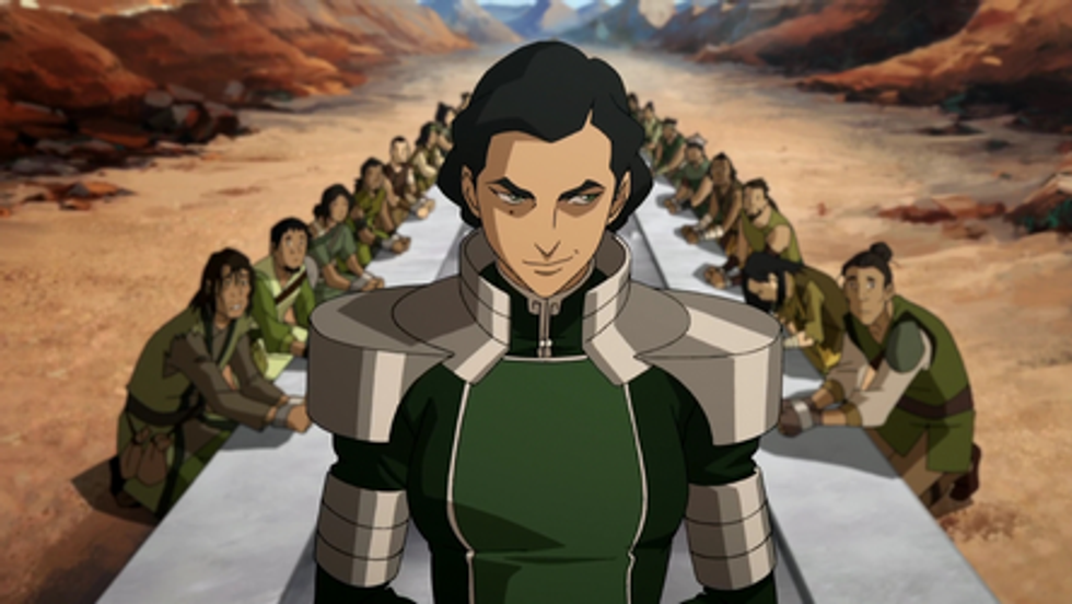 Did you notice a pattern amongst Korra's villains? All were cold, calculating strategists that had an underlying ferocity to them that made them intimidating. While they work fine as individuals, seeing them all lined up together kind of makes them seem unoriginal. When Kuvira was revealed as the villain of the fourth season, I first thought, "Oh look. Another calm, collected strategist who does terrible things with their superior skill and intellect. Where have I seen that before?" There isn't much diversity in personality here; there's enough so that the villains aren't boring, but not enough for them to really stand apart from each other except in their motivation.
