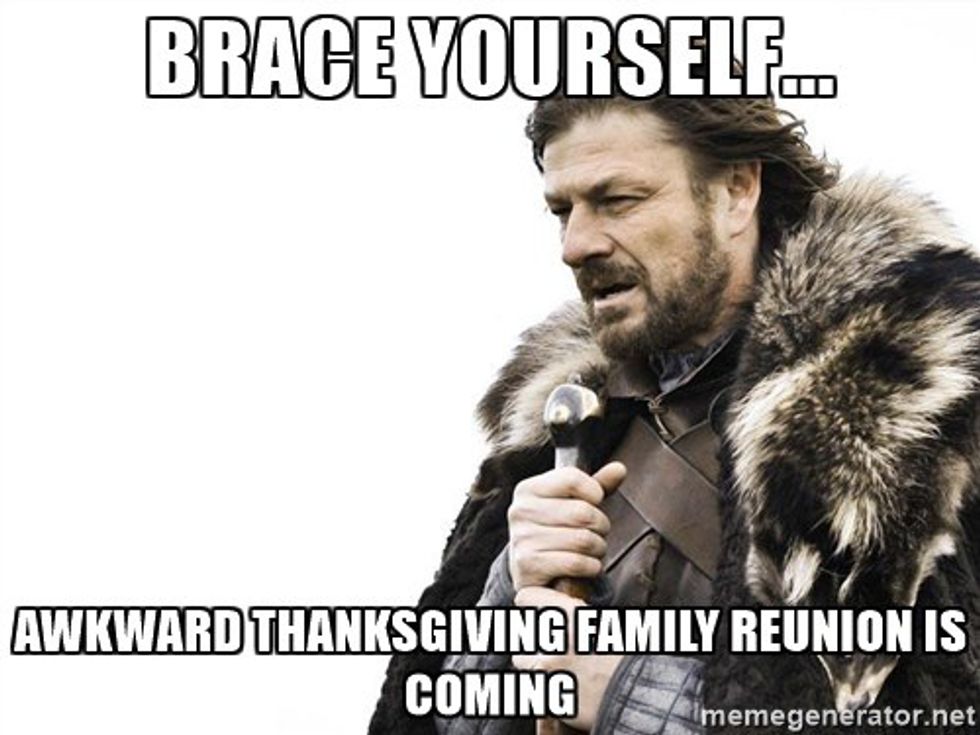 Thanksgiving is a wonderful holiday great for giving thanks and spending time with friends and family BUT sitting down to dinner with the whole fam can sometimes lead to some rather tense conversation. Maybe someone brings up some family drama, maybe a relative inquires about your grades, maybe someone brings up the election, maybe the dog pees on the carpet, maybe someone eloped the day before Thanksgiving -- whatever it is, sometimes Thanksgiving can be tricky. To avoid any less than desirable Thanksgiving banter here is a list of family friendly topics you can always bring up to change the subject and avoid crisis.