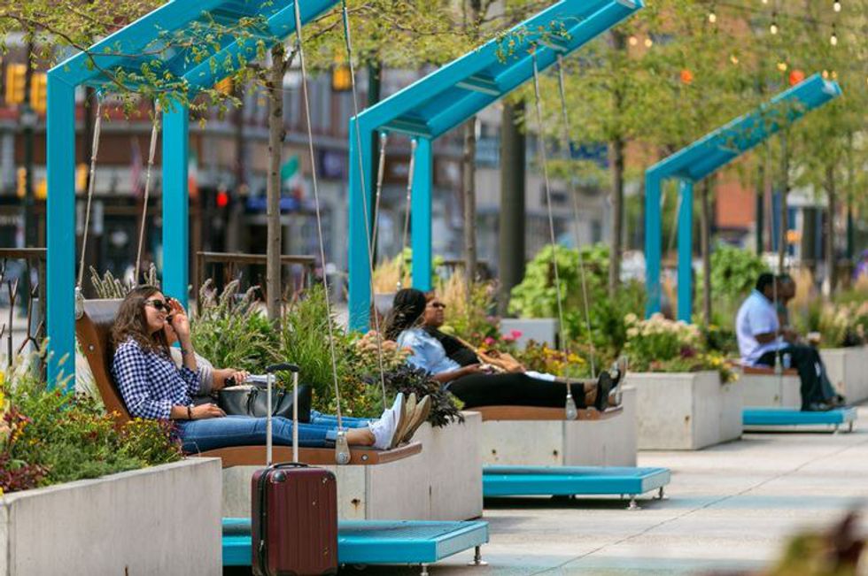 There are limited resources for sunshine and bliss in a city. This one has a dope backdrop and a waterfall that may or may not serve an actual purpose.