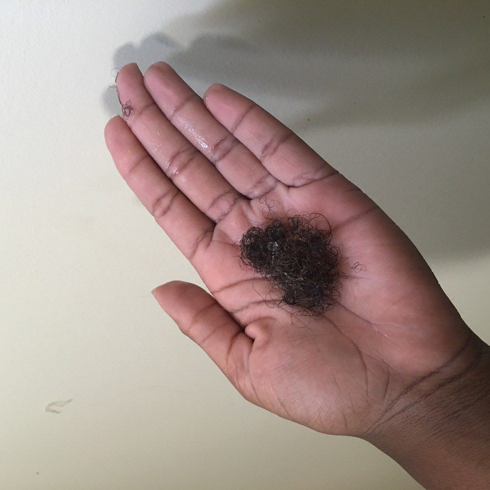 The key is to make sure the hair isn’t being pulled or yanked, as it would be with a fine tooth comb. No matter what, hair will always come out when combing through those curls, but a wide tooth comb is always the best option. See! Not that much hair came out after each section is knot free.