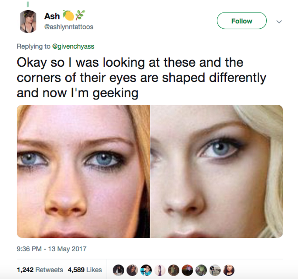 Many fans noticed the difference in freckles and how Avril on the right has a lot less than "Melissa" on the left.