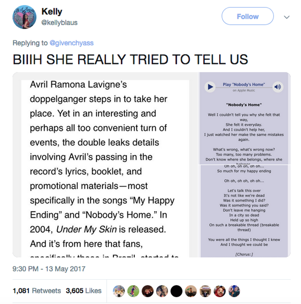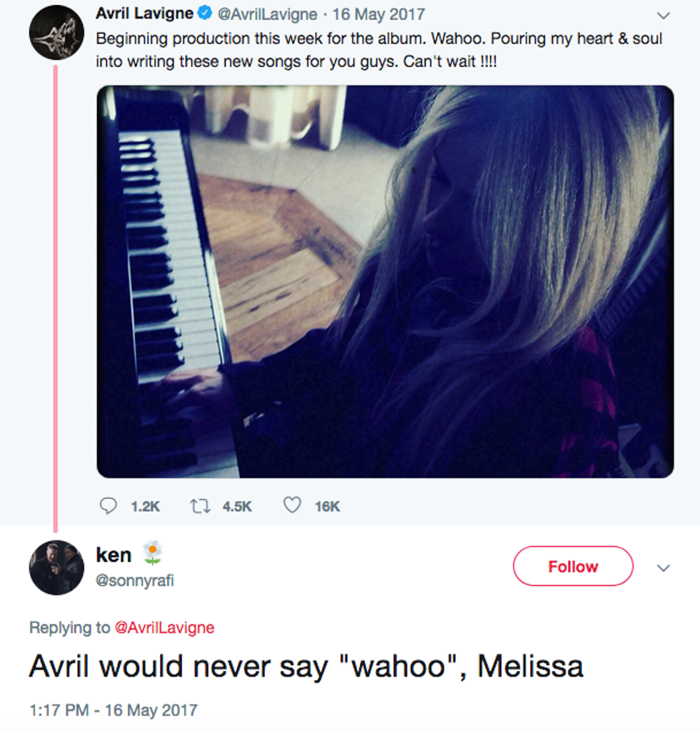 Fans get mixed signals from even terminology that Avril would supposedly never use.