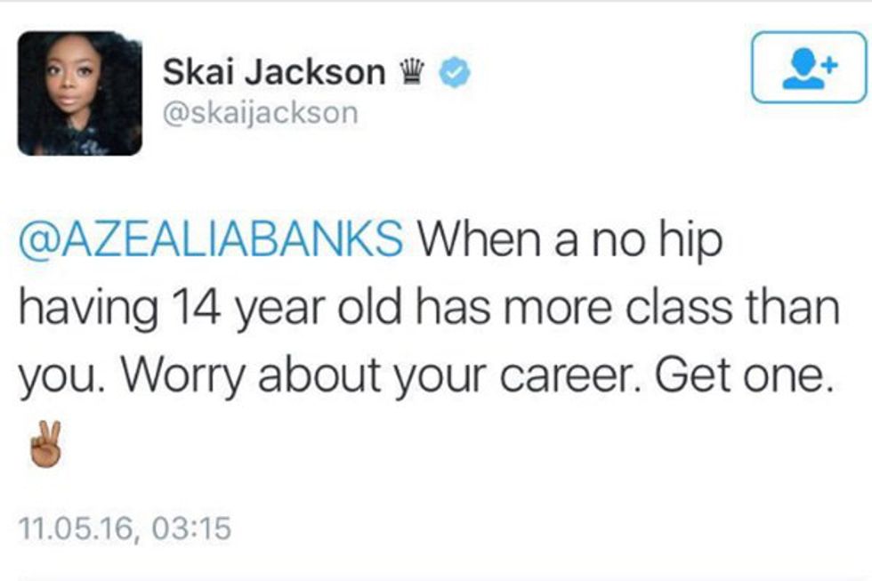 Jackson held nothing back when going after Banks. The insults varied from having a career to body shape and size. For quite some time Banks and Jackson were going back and forth causing both of the them to start trending on Twitter. Many were shocked that Banks would even attack a fourteen year old while others were shocked by the cleverness and whit that Skai Jackson produced in her tweets.