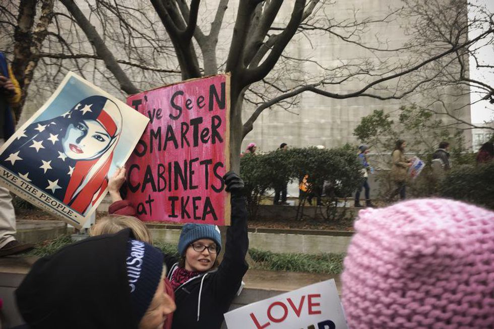 I will admit, that after seeing the crowds with pink hats and signs, the thought that we're one collective group fighting for change (or at least fighting for bad changes to not happen) is comforting. It was fantastic and inspiring to see how many women and other genders were at the march. Some signs were funny, some thought provoking, and other signs reached my deepest "hell yeah!" There was a feeling of not being alone, and feeling less powerless. All on day one.