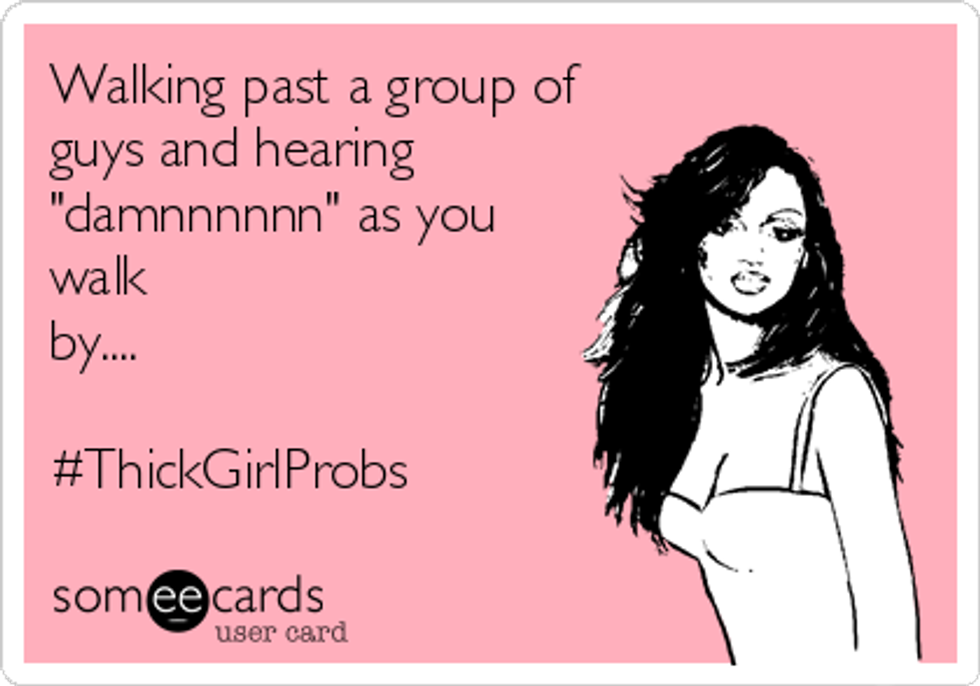 There are so many other things I have to offer that's not physical. I have a good personality, I'm cute in the face (sometimes), I just want to wear a pair of leggings or a pair of tight jeans without being whistled at or hearing "damn..." being whispered as I walk by. I get it...it's there, keep your comments to yourself or between you and your buddies.