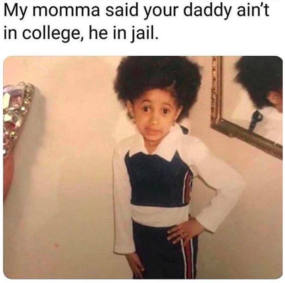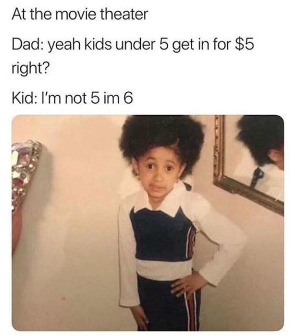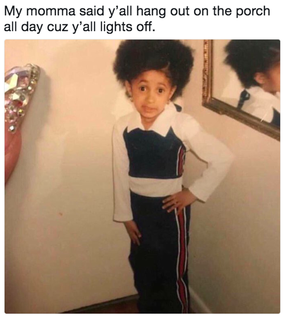 As you already have seen, rapper Cardi B posted a picture of herself from when she was 5. The picture has taken over the internet (sorry Kim K). Over the past month, the picture has become a hilarious meme. Cardi B also welcomed her first child with Offset. Even the baby has been subject to the meme, but you can't deny that they're hilarious and relatable.