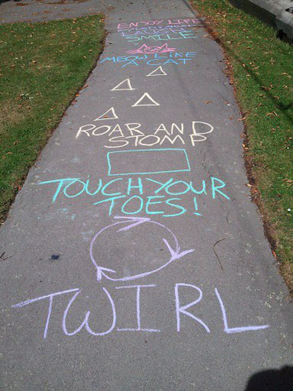 It's kind of like "Simon Says" but they could help you make it with chalk! This is a great way to tire them out too ;)